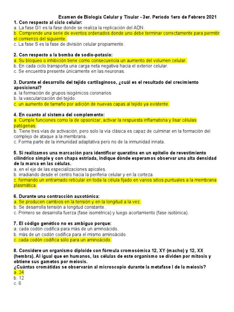 Examen De Biologia Celular Y Tisular 3er Pdf Trifosfato De Adenosina Plaqueta