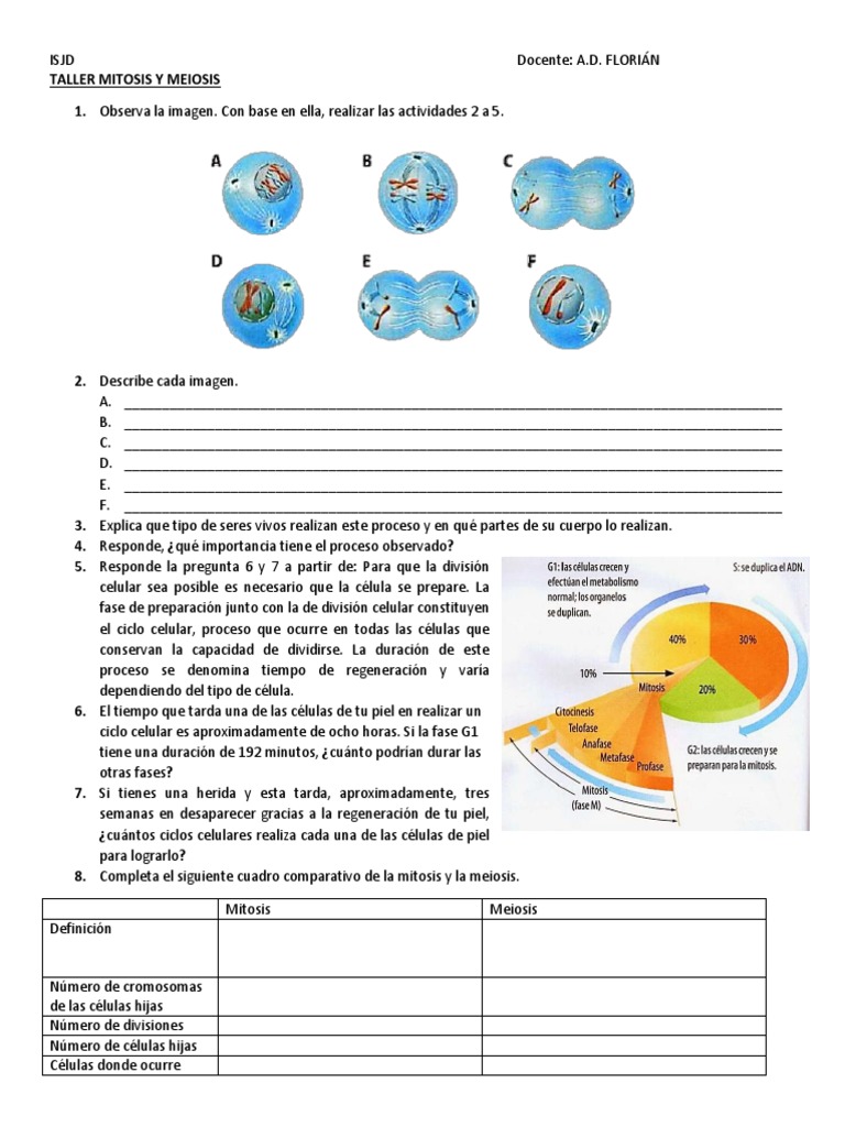 Taller Ciclo Celular Mitosis Y Meiosis Instituto Nacional Departamento De Biolog Coordinaci Nm 2014 Nombre Curso Gu De Estudio Tomada Modificada Del Instituto Studocu
