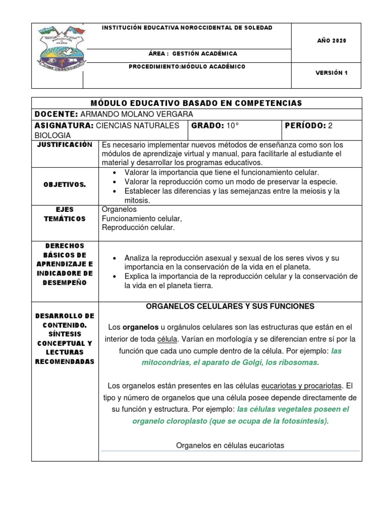 Modulo Integrado 10 Grado Pdf Mitosis Biologia Celular